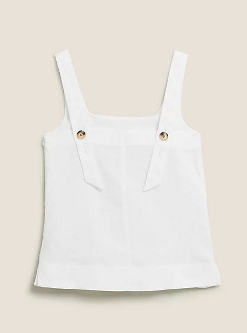 Τα βαμβακερά παντελόνια είναι ιδανικά για αυτές τις ζεστές και συναγωνίζεται το αφάνταστα ελαφρύ λινό ύφασμα. Στα Marks&Spencer μπορούμε να βρούμε πανέμορφα σχέδια για κάθε περίσταση και γούστο, έτσι εμείς ξεχωρίζουμε αυτό το παντελόνι που στενεύει στα μπατζάκια ώστε να ταιριάξει είτε με σανδάλια είτε με πιο ψηλά παπούτσια. Το συνδυάζουμε με ένα λινό camisole με αυτόν τον ιδιαίτερο σχεδιασμό με τα κουμπιά στο πίσω μέρος.