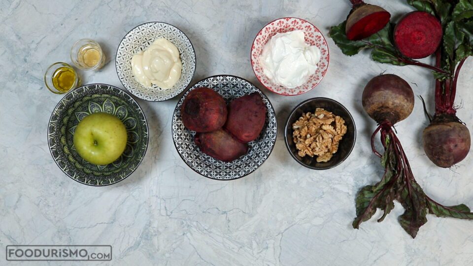 Σερβίρουμε την παντζαροσαλάτα με λίγα τριμμένα καρύδια από πάνω.