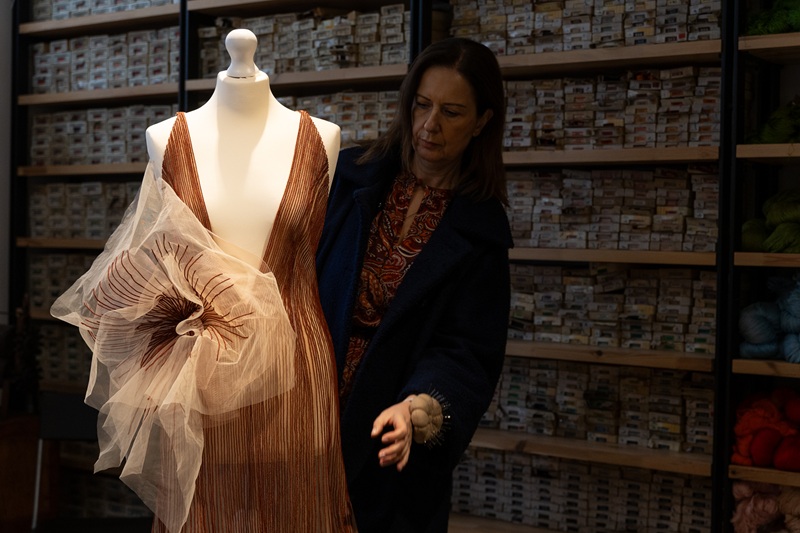 Αν και παραδοσιακά χρησιμοποιούνται ως διακοσμητικά στοιχεία ενός ενδύματος, από την ελληνική παράδοση έως και τη σύγχρονη μόδα, η σχεδιάστρια αξιοποιεί τα υλικά του ΝΗΜΑΤΟΣ ως πρώτη ύλη για τη δημιουργία επιφανειών και όγκων που συνθέτουν σύγχρονα ενδύματα.