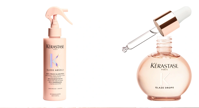- Kérastase Gloss Absolu Glaze Milk: Σπρέι – λακτώδης υφή που λειαίνει τα μαλλιά, προσφέρει λάμψη και προστασία από υγρασία και θερμότητα.