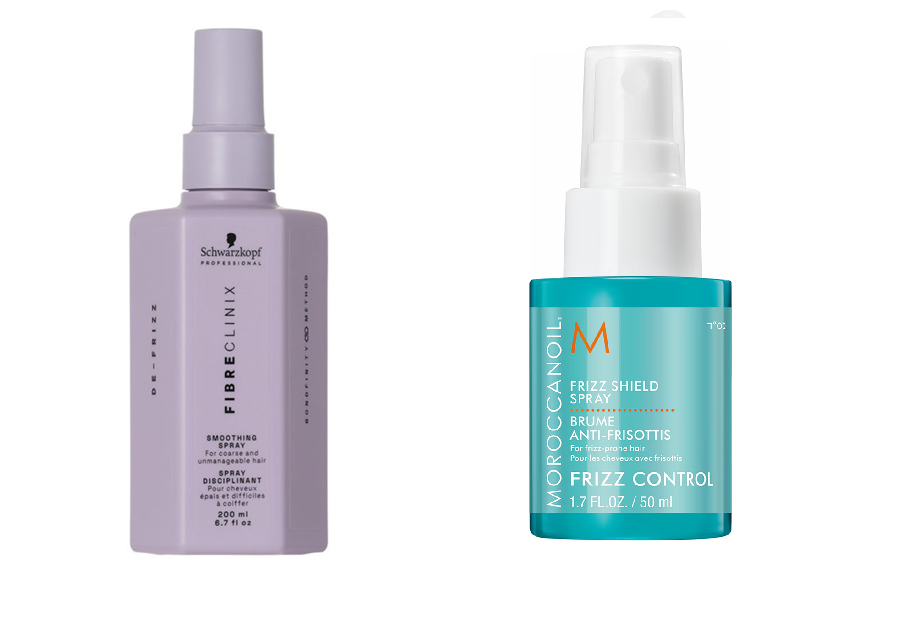 - Schwarzkopf: Το Fibre Clinix De-Frizz Smoothing Spray είναι πολύ αποτελεσματικό — λειαίνει, ελέγχει το φριζάρισμα και προστατεύει από τη θερμότητα έως τους 230°C.
