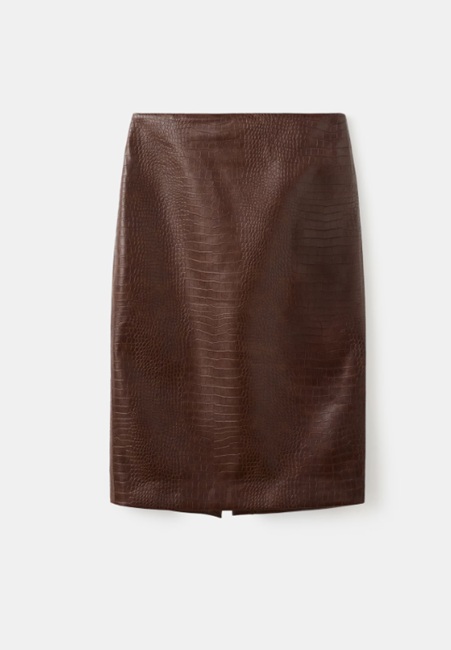 Η νέα συλλογή του Mango προσφέρει μία μεγάλη γκάμα από γραμμές, χρώματα και υφές που ταιριάζουν σε οποιαδήποτε περίσταση και διάθεση. Εμείς ξεχωρίσαμε αυτήν την croc effect pencil φούστα σε συνδυασμό με αυτή την animal print μπλούζα με το μαντίλι δημιουργούν ένα elegant and smart outfit για το γραφείο κι όχι μόνο! Ο λόγος που ανέφερα τη διατήρηση των γραμμών στο outfit είναι για να μας επιτρέψει να “παίξουμε” με την αντίθεση του όγκου αυτού του aviator shearling jacket.