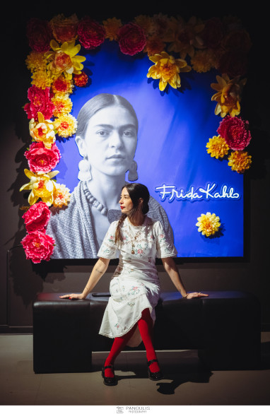 Ξεχωρίζει επίσης η εγκατάσταση “Το Όνειρο”, που μας μεταφέρει στο κρεβάτι της Φρίντα, εκεί όπου γεννήθηκε μεγάλο μέρος της τέχνης της. Η εμπειρία συνεχίζεται στην Pulquería La Rosita, την παραδοσιακή μεξικανική ταβέρνα όπου δίδασκε ζωγραφική, αλλά και στην ενότητα “Είδωλο της Μόδας”, που αποκαλύπτει πώς τα χαρακτηριστικά ρούχα και τα λουλούδια στα μαλλιά της έγιναν σύμβολο ταυτότητας και πολιτισμικής υπερηφάνειας.