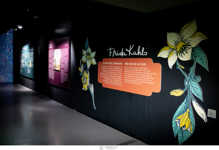 Η περιήγηση ξεκινά από έναν συμβολικό βωμό εμπνευσμένο από τη Día de Muertos, το μεξικανικό έθιμο που τιμά τη μνήμη των νεκρών, και συνεχίζει σε μια διαδραστική στοά γεμάτη χρώμα και σύμβολα που καθόρισαν την αισθητική της Φρίντα. Από τις πιο δυνατές στιγμές της έκθεσης είναι η τρισδιάστατη ψηφιακή αναπαράσταση του ατυχήματος που σημάδεψε τη ζωή της – μια υπενθύμιση ότι ο πόνος έγινε τελικά πηγή δημιουργίας.