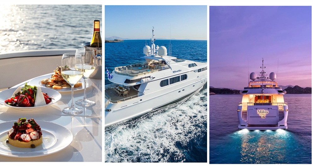 Στην καρδιά της εμπειρίας βρίσκεται η γαστρονομία. Ένας ιδιωτικός σεφ μεταφέρει onboard τη φιλοσοφία του estiatorio Milos, δημιουργώντας πιάτα βασισμένα σε φρέσκα θαλασσινά, εποχικά προϊόντα και αυθεντικές ελληνικές γεύσεις. Κάθε γεύμα αποτελεί μέρος του ταξιδιού και όχι απλώς μια στάση μέσα σε αυτό.