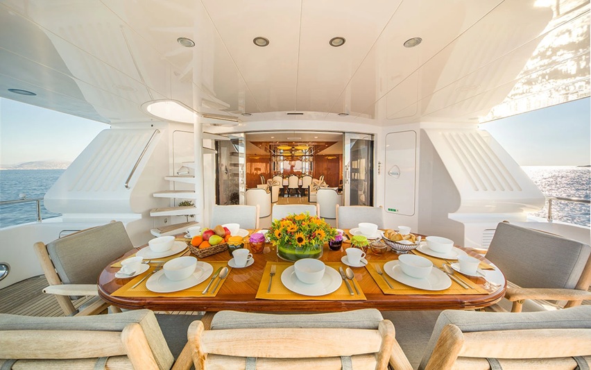 Παράλληλα, ένα έμπειρο επαγγελματικό πλήρωμα φροντίζει με διακριτικότητα κάθε λεπτομέρεια, επιτρέποντας στους επισκέπτες να αφεθούν πλήρως στην εμπειρία του «at sea living».
