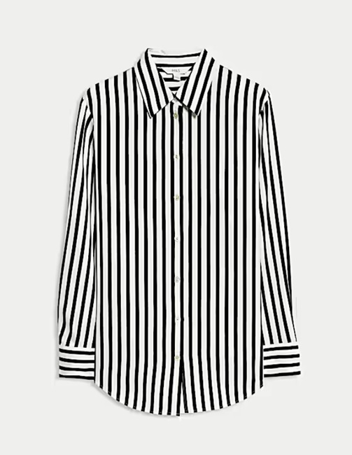 Από τη συλλογή των Marks & Spencer μπορούμε να επιλέξουμε κομμάτια για κάθε στιγμή της ημέρας, με τα κομμάτια να ανταποκρίνονται στο στυλ της καθεμιάς μας. Για ένα office smart look που είναι ιδανικό και για ένα γεύμα ή ένα ποτό μετά τη δουλειά ξεχωρίζουμε αυτό το κρεπ παντελόνι σε μωβ απόχρωση σε συνδυασμό με αυτό το ριγέ σατέν πουκάμισο για μία ακόμη πιο posh νότα! Κι επειδή πρέπει να φυλαγόμαστε από τα κρύα του Νοέμβρη, αυτό το faux leather jacket τονίζει τον smart χαρακτήρα του outfit.