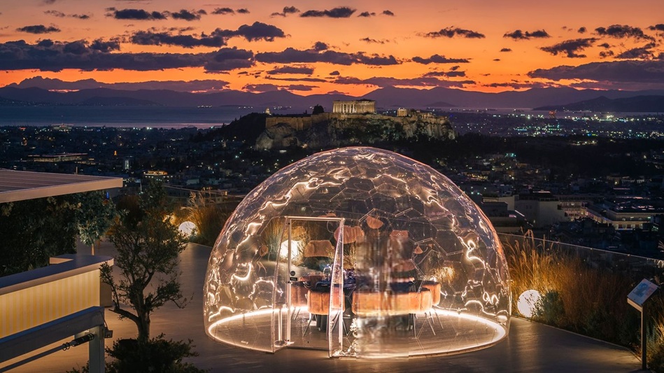 Μέσα σε κομψούς, θερμαινόμενους, διάφανους θόλους, θα απολαύσετε μια high-end γαστρονομική εμπειρία με πανοραμική θέα 360° στην Αθήνα. Κάθε dome είναι ένας ιδιωτικός κόσμος, σχεδιασμένος για απόλυτη άνεση και αίσθηση διακριτικής πολυτέλειας.
