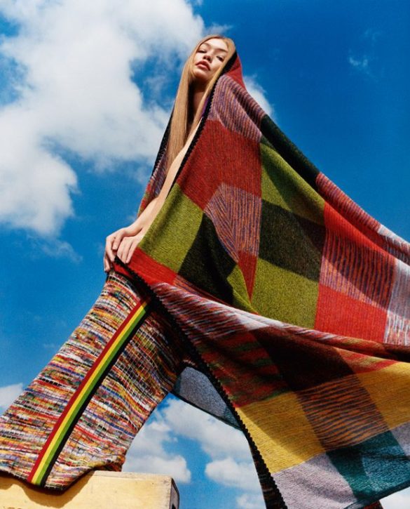 Έντονα χρώματα που είναι και το σήμα κατατεθέν του οίκου και η Gigi Hadid σε πρώτο πλάνο.